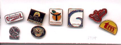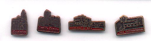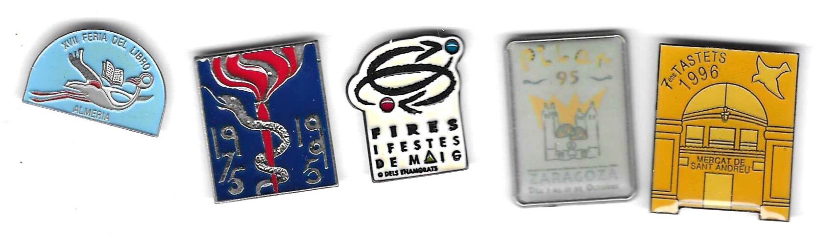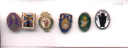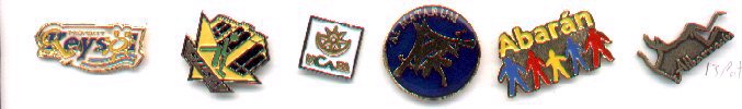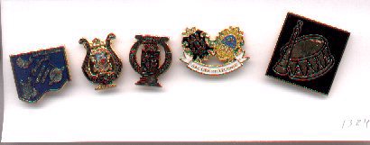 5 pins: Grup de Dances, Lira con escudo, Union Alguñense, Lira
