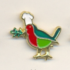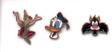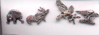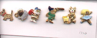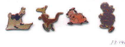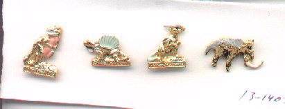 4 Pins diferentes. Oso, ardilla, ave con conejo, ave |